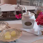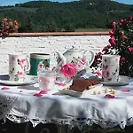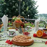 Podawane jest śniadanie w ogrodzie.